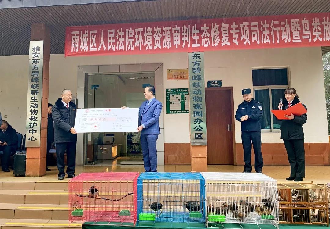 12月3日,雅安市雨城區(qū)人民法院“環(huán)境資源審判生態(tài)修復(fù)專項(xiàng)司法行動(dòng)暨鳥類放生活動(dòng)”在碧峰峽景區(qū)境內(nèi)進(jìn)行。雨城區(qū)人民法院、區(qū)檢察院、區(qū)公安分局、區(qū)林業(yè)局及東方碧峰峽旅游有限公司相關(guān)領(lǐng)導(dǎo)和工作人員參與了活動(dòng),對(duì)“打擊破壞野生動(dòng)物資源犯罪專項(xiàng)行動(dòng)”中依法收繳的涉案野生活體鳥類進(jìn)行放生。放生儀式上,隨著鳥籠打開,一只只久困樊籠的鳥兒們自由地飛向了天空和枝頭。15只畫眉、7只竹雞、1只紅嘴藍(lán)鵲,1只普通鵟、2只苦惡鳥獲得了新生,重返大自然家園。