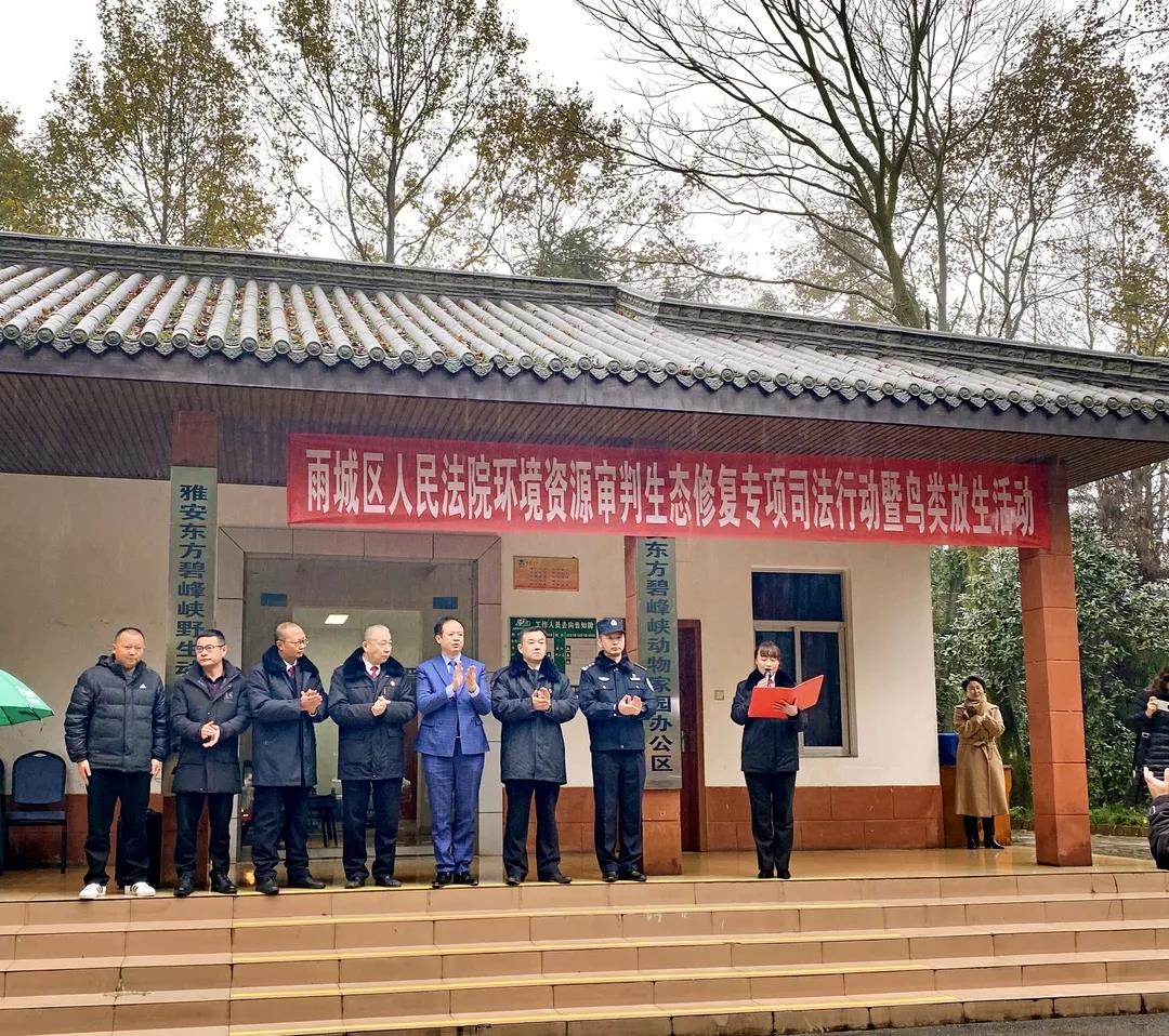 12月3日,雅安市雨城區(qū)人民法院“環(huán)境資源審判生態(tài)修復(fù)專項(xiàng)司法行動(dòng)暨鳥類放生活動(dòng)”在碧峰峽景區(qū)境內(nèi)進(jìn)行。雨城區(qū)人民法院、區(qū)檢察院、區(qū)公安分局、區(qū)林業(yè)局及東方碧峰峽旅游有限公司相關(guān)領(lǐng)導(dǎo)和工作人員參與了活動(dòng),對(duì)“打擊破壞野生動(dòng)物資源犯罪專項(xiàng)行動(dòng)”中依法收繳的涉案野生活體鳥類進(jìn)行放生。放生儀式上,隨著鳥籠打開,一只只久困樊籠的鳥兒們自由地飛向了天空和枝頭。15只畫眉、7只竹雞、1只紅嘴藍(lán)鵲,1只普通鵟、2只苦惡鳥獲得了新生,重返大自然家園。